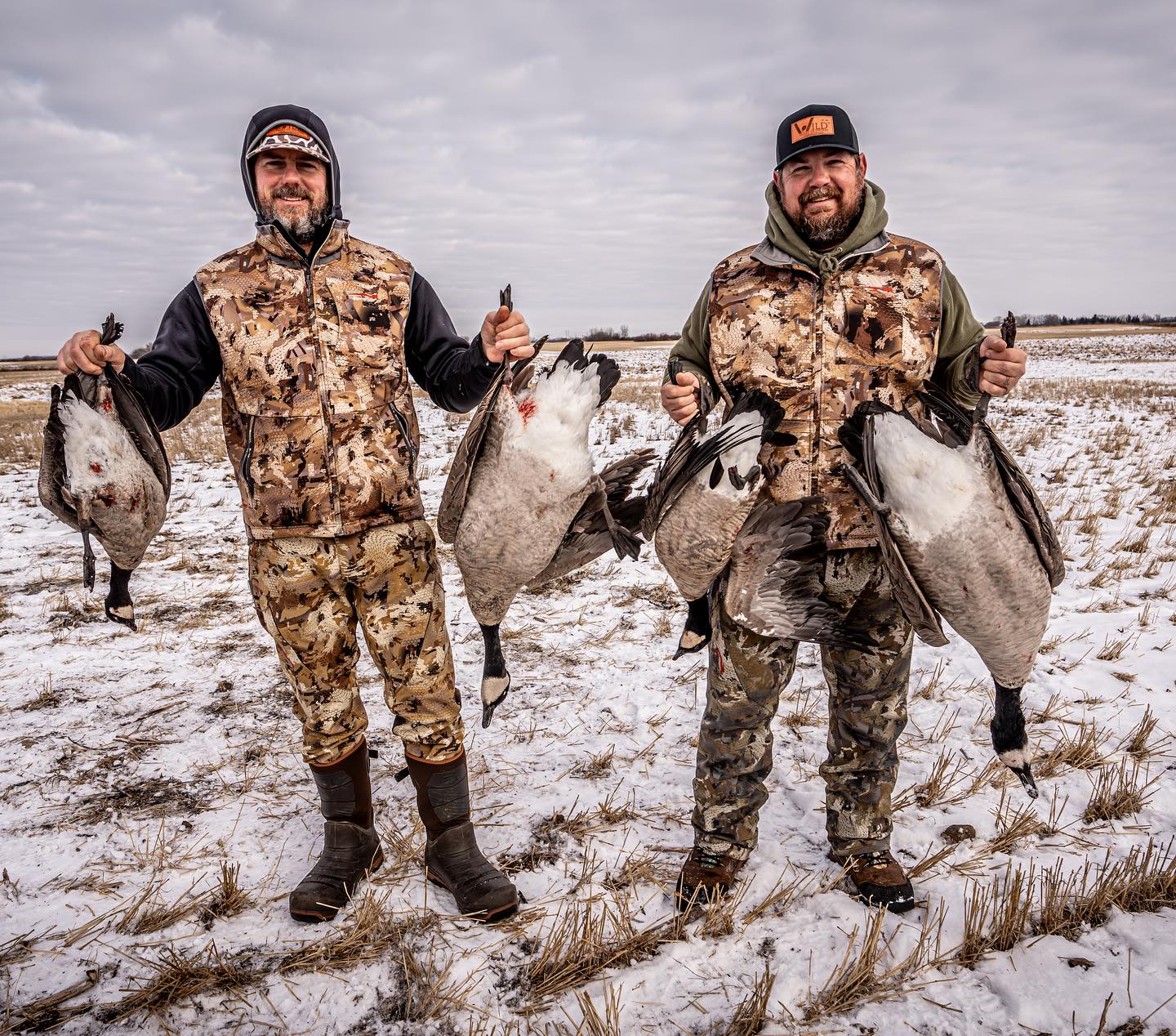 We pride ourselves in using some of the best equipment the industry has to offer. We typically hunt over a mixture of full body, wind sock, and silhouette decoys. We prefer using stand-up blinds in natural cover for our clients' comfort, but we will use layout blinds when the conditions or terrain dictate.