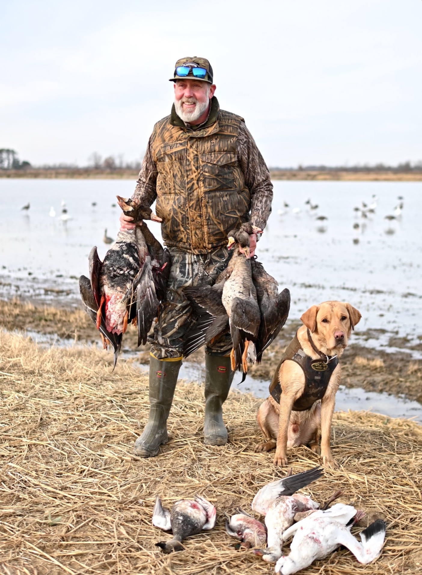Every year we record and store flight path and field feeding history of our grounds. We scout daily to touch up blinds before and after every hunt. We use ice eaters to keep our holes up during freezing temperatures.