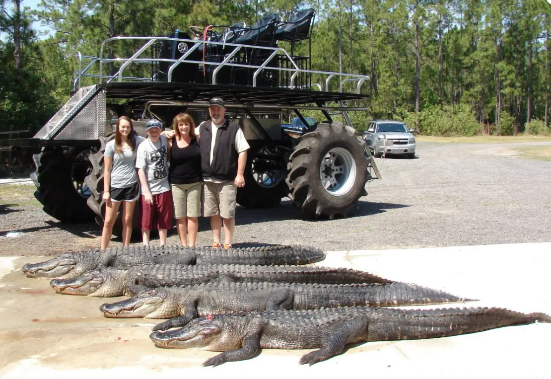 Due to a wide variety of weather we try to be prepared for anything. Generally we recommend t-shirt, jeans or shorts, and tennis shoes or hunting boots for the alligator hunts. We recommend full camo for any turkey hunts including mask and gloves. We also recommend you bring a light jacket and extra shirt.