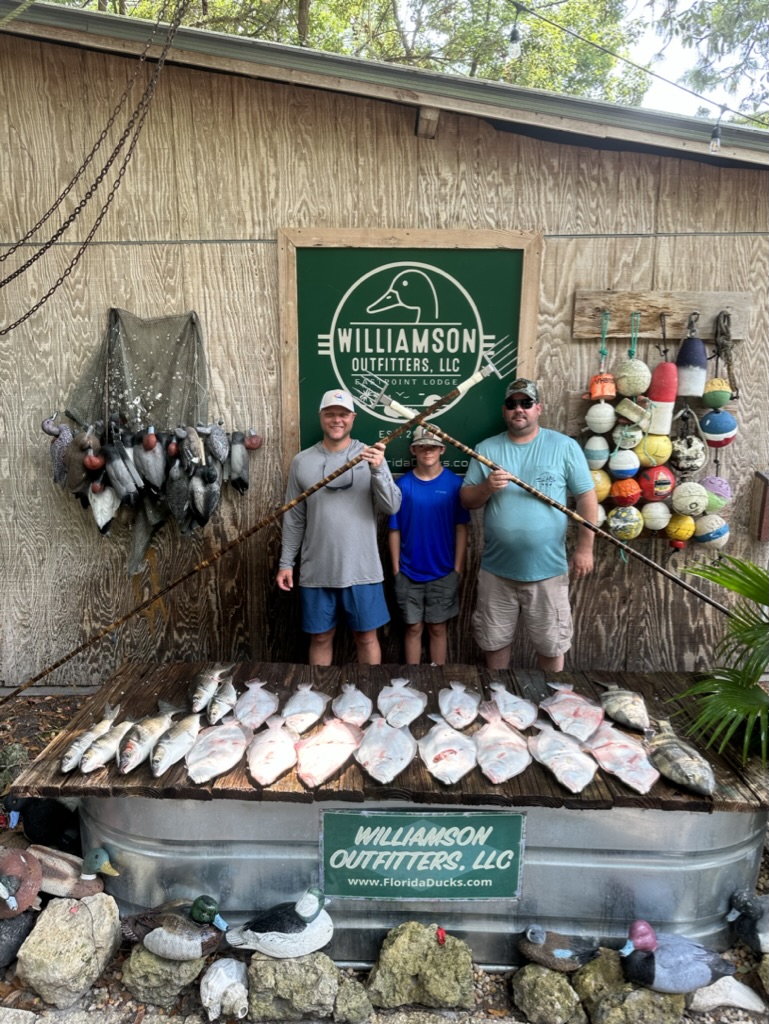 Join us on an exciting nocturnal adventure, nighttime gigging! Each gigging excursion promises a blend of excitement, discovery, and awe-inspiring beauty of Florida's coastal life at night. Whether you're a seasoned gigging enthusiast or new to the sport, our guided tours offer an opportunity to harvest fish in a fun and unique way! On the menu includes flounder, sheepshead, black drum, mullet, stingrays, and gar! We also offer frog gigging trips! Come explore the wonders of the night in a safe and exhilarating way. Contact us today to embark on a family-friendly gigging adventure that will create lasting memories under the stars.