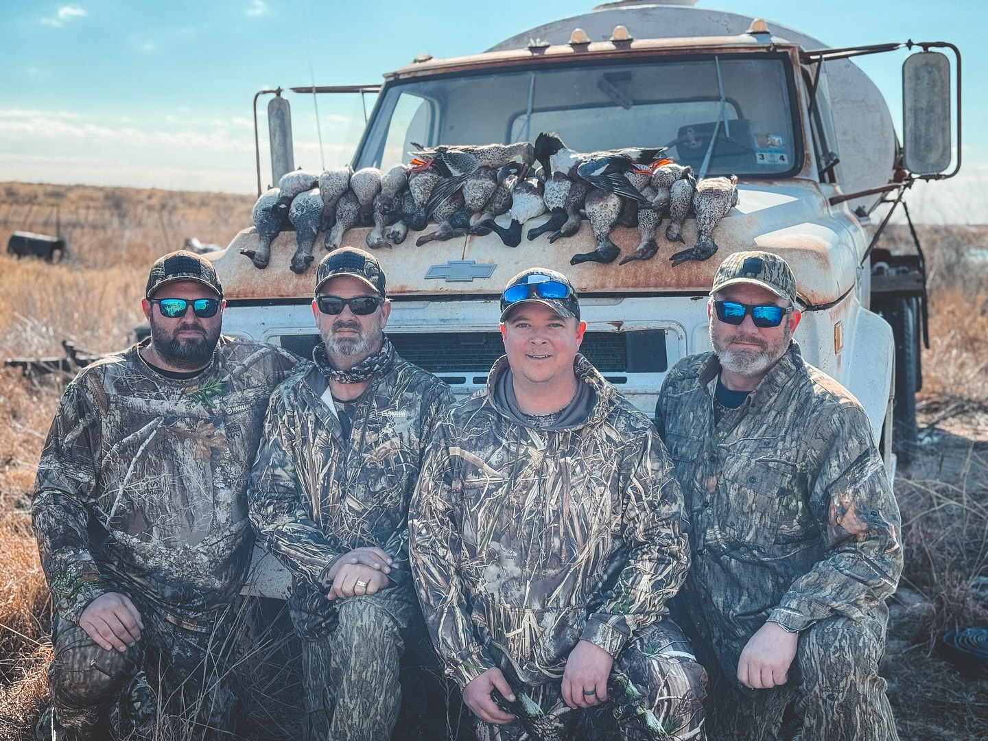 Our fully guided duck hunts consist of hunting out of blinds over water on one of our several playa lakes. The Texas Panhandle is home to thousands of playa lakes—seasonal, shallow wetlands that serve as critical water sources for migrating waterfowl. These lakes attract an abundance of ducks, including mallards, pintails, wigeons, gadwalls, and teal, offering hunters excellent shooting opportunities. The flat, open landscape makes concealment key, so we set up our well-brushed blinds near the water’s edge.